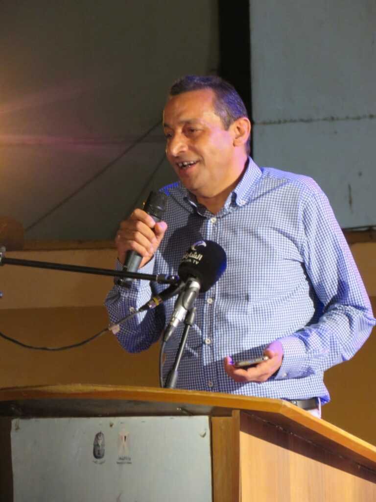 بعد ذلك بدأت الأمسية التي قدمها الشاعر محمود مرعي للاحتفاء بتجارب بعض الشعراء الذين جاءوا في كتاب “إمام العاشقين” الذي أعده وقدمه الشاعر السماح عبدالله، وفي كلمة قصيرة تحدث الشاعر السماح عبدالله عن قيمة الشعر ووجدان الشاعر الشعبي، وقيمة الشعر الشعبي وما يمثله في روح ووجدان المصريين، مشيرًا إلى أنه قد مرت علينا فترات لم يكن فيها التدوين يلاحق ما تنتجه القريحة الشعبية، ففقدنا كثيرًا من موروثنا وتاريخنا الشعري الذي امتلأ به وجداننا الشعري، ثم في القرن العشرين أصبح من الطبيعي أن يزاحم شعر العامية المصرية شعر الفصحى فبدأ التدوين لشعر العامية، متحدثًا عن سمة من سمات الشعر الشعبي وهو قربه إلى الناس في بساطتهم وعاداتهم اليومية وهو الأمر الذي دفعه لجمع هذه المختارات الشعرية.