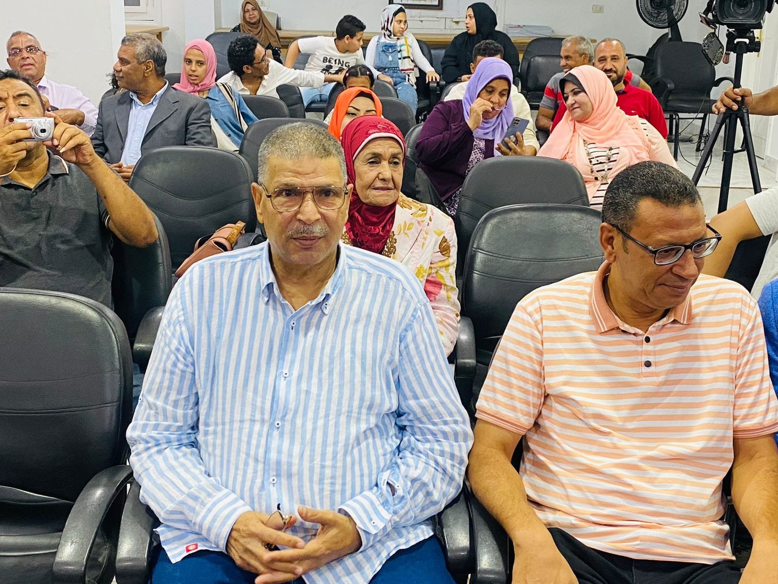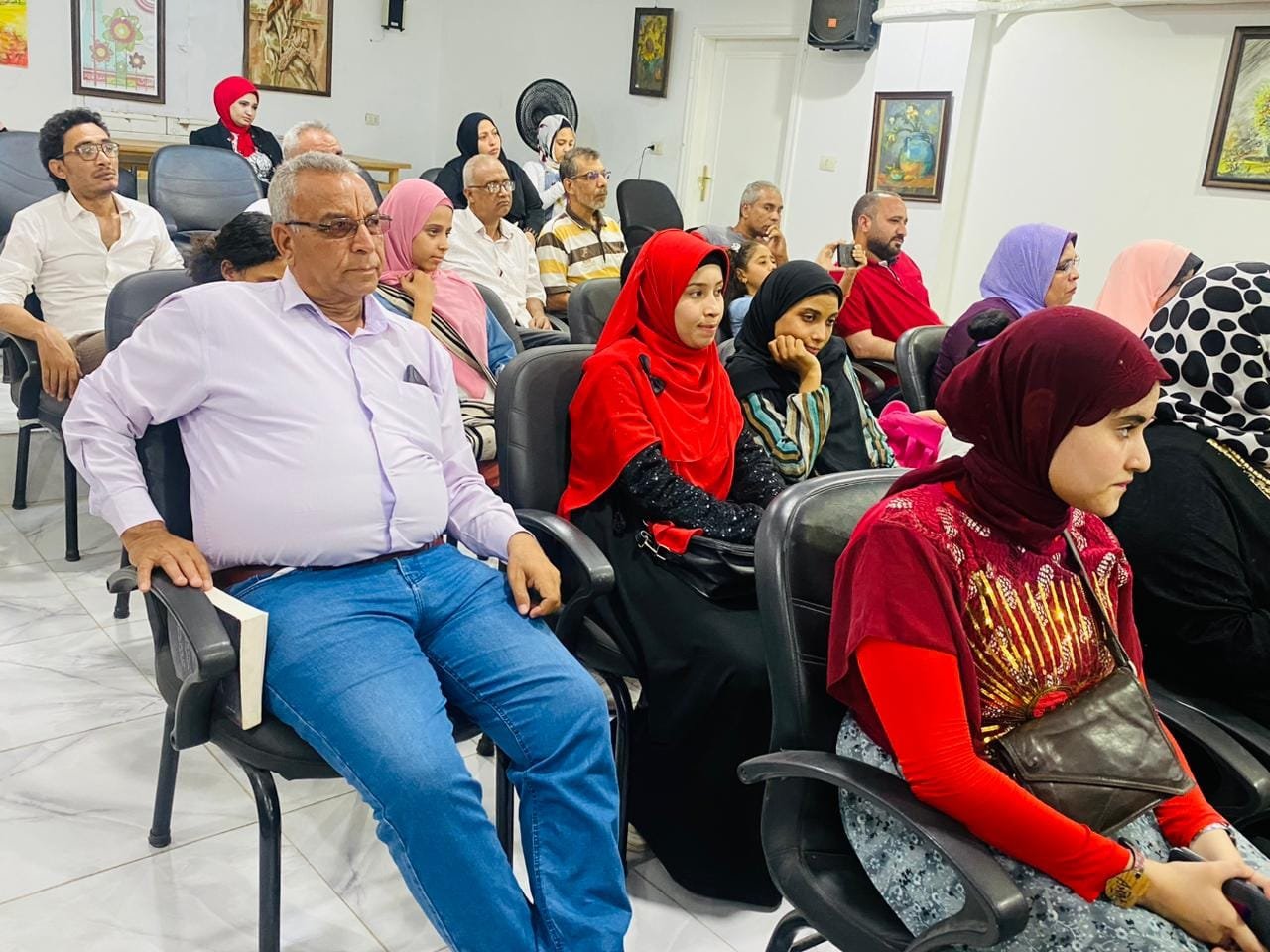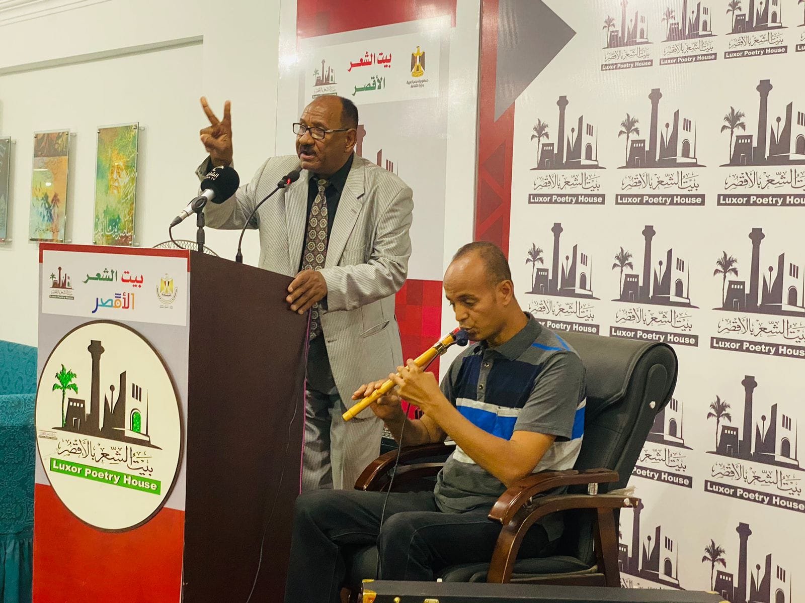 وفي الجزء الأخير من الأمسية استمع الجمهور إلى الفقرة الفنية التي قدمها الفنان حسن ناجي والفنان طه النبوي على الناي.