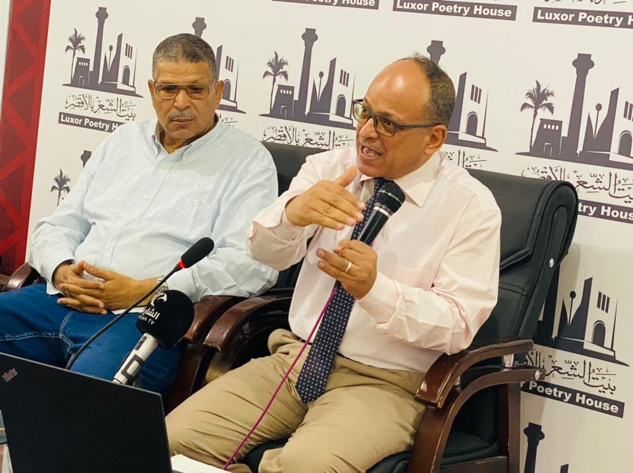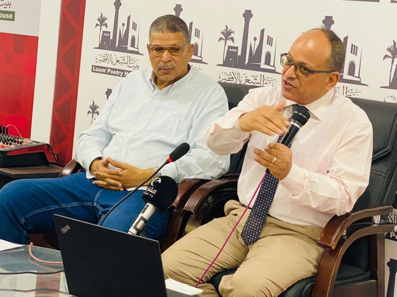 استضاف اليوم السبت الموافق ١٣ أغسطس ٢٠٢٢ د. فرج قدري الفخراني استاذ الأدب والفولكلور بكلية الآداب بقنا الذي قدمه الشاعر حسين القباحي مدير بيت الشعر في الأقصر.