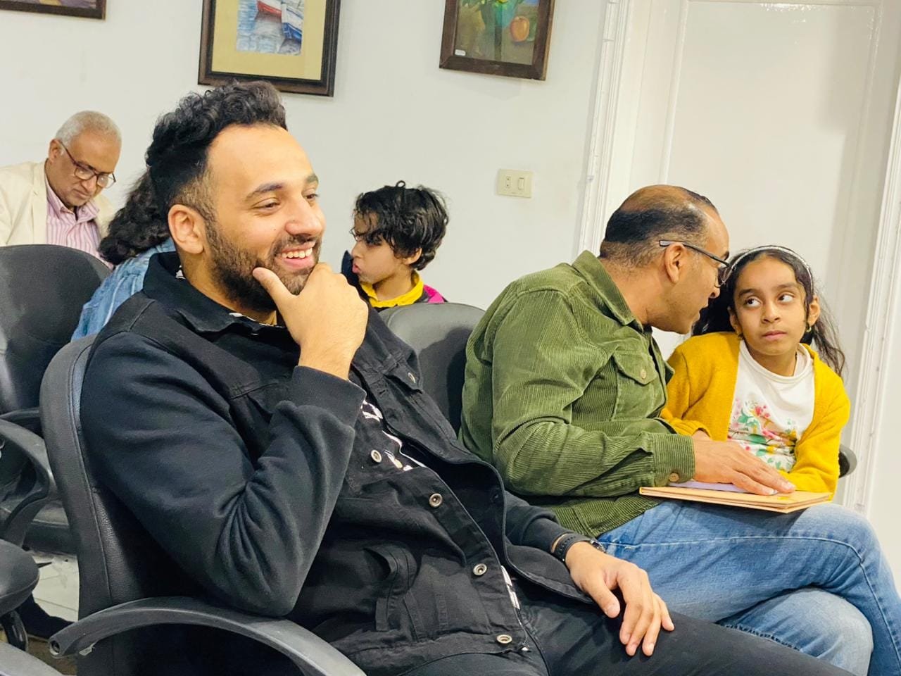 بدأت الأمسية بقراءة السيرة الذاتية للشاعر الدكتور علاء جانب فهو شاعر مصري يشغل منصب وكيل كلية اللغة العربية بجامعة الأزهر بالقاهرة ولد في قرية عرابة أبو دهب في سوهاج (25 ديسمبر عام 1973م).حصل على لقب أمير الشعراء في الموسم الخامس من مسابقة أمير الشعراء عام 2013،وصدر له مجموعة من الدواوين الشعرية منها: