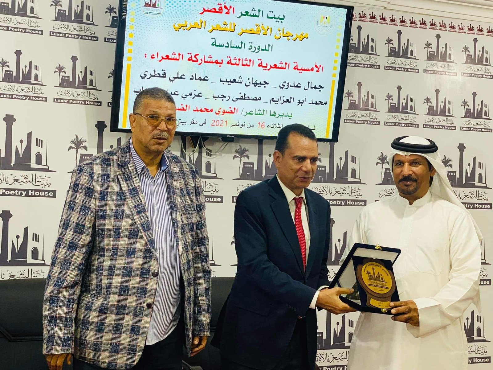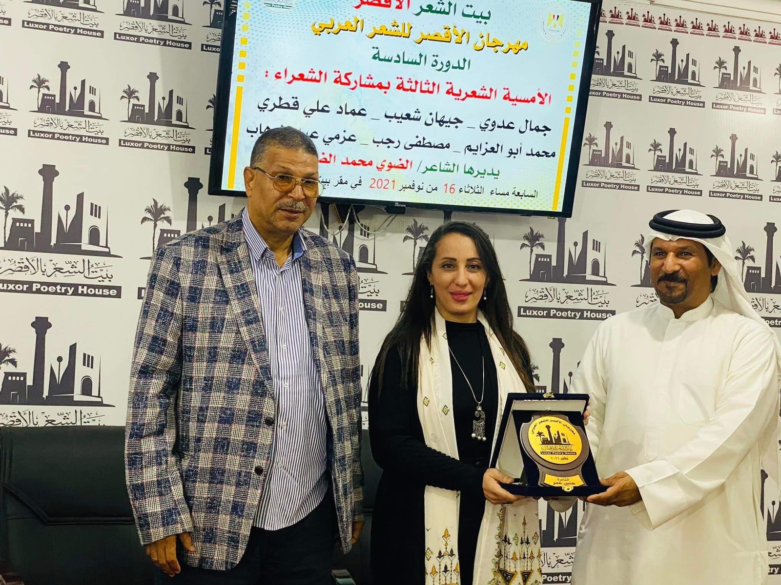 جيهان شعيب، محمد أبو العزايم، مصطفى رجب، وبعد أن انتهى الشعراء من قراءة قصائدهم تم تكريمهم بدرع المشاركة على مسرح بيت الشعر.