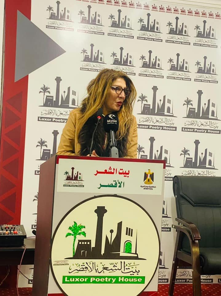 ثم استمع الحضور إلى كلمة الدكتورة إيمان نجم رئيس الإدارة المركزية للشؤون الأدبية والتي أعربت فيها عن سعادتها بالتعاون مع بيت الشعر بالأقصر ومكتبة مصر العامة التي أقيم فيها بالأمس معرض للفن التشكيلي، واليوم يحتضن بيت الشعر بالأقصر هذه الأمسية الشعرية التي يشارك فيها الشعراء الحاصلون على منحة وزارة الثقافة للتفرغ.