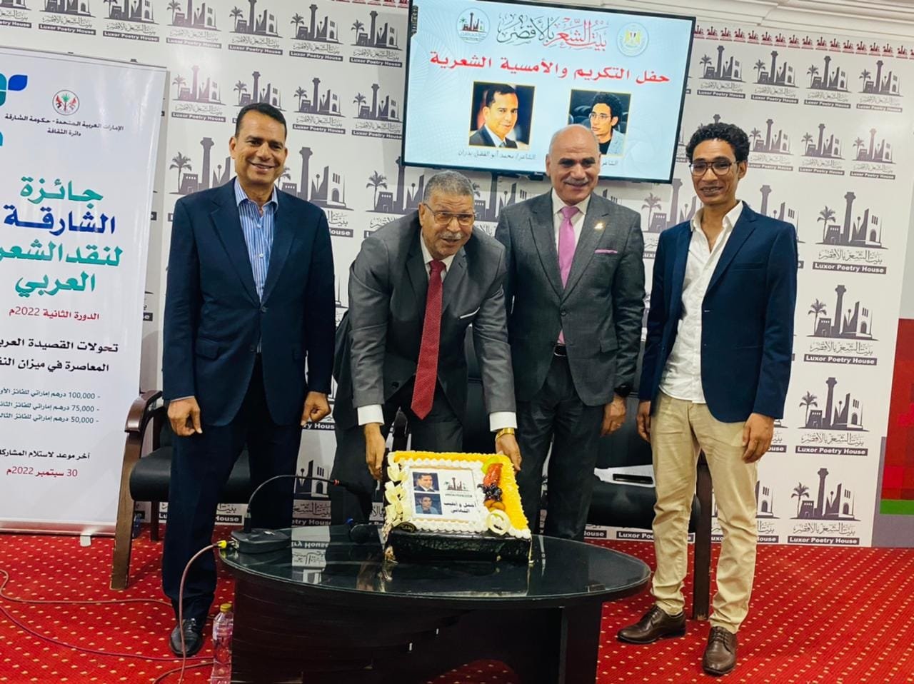 أقام بيت الشعر بالأقصر اليوم السبت الموافق ٢ يوليو ٢٠٢٢ أمسية شعرية وحفل تكريم للشاعر الأستاذ الدكتور محمد أبو الفضل بدران والشاعر حسن عامر، وذلك بمناسبة فوزهما بجوائز الدولة هذا العام، حيث فاز الأستاذ الدكتور محمد أبو الفضل بدران بجائزة الدولة التقديرية في الآداب، بينما فاز الشاعر حسن عامر بجائزة الدولة التشجيعية في الشعر عن ديوانه “كالذي جرب الطريق” وقام بتقديم الأمسية الشاعر حسين القباحي مدير بيت الشعر بالأقصر.