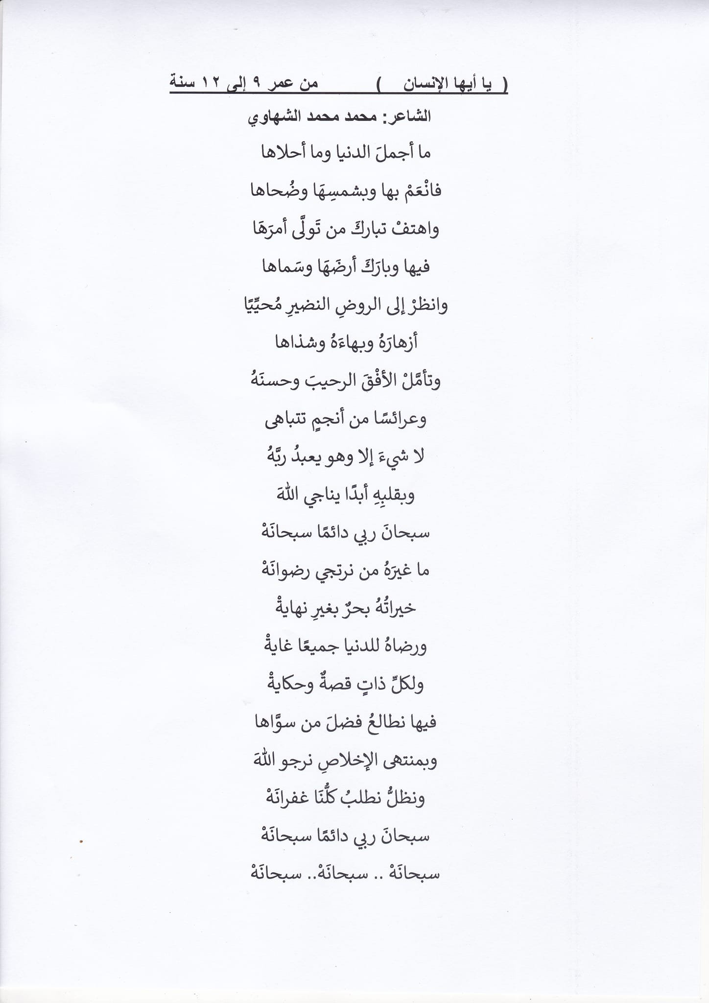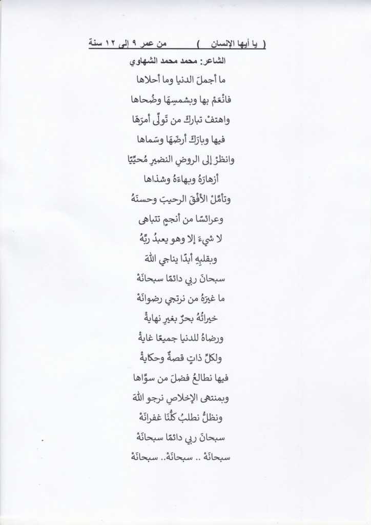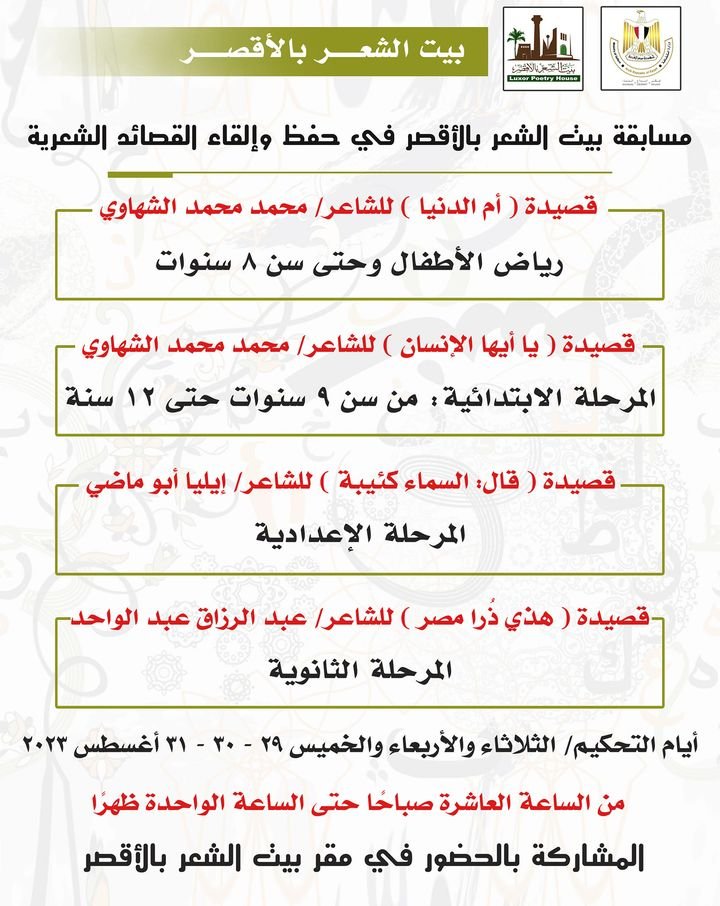 يعلن عن المسابقة السنوية لحفظ و إلقاء القصائد للمراحل العمرية المختلفة