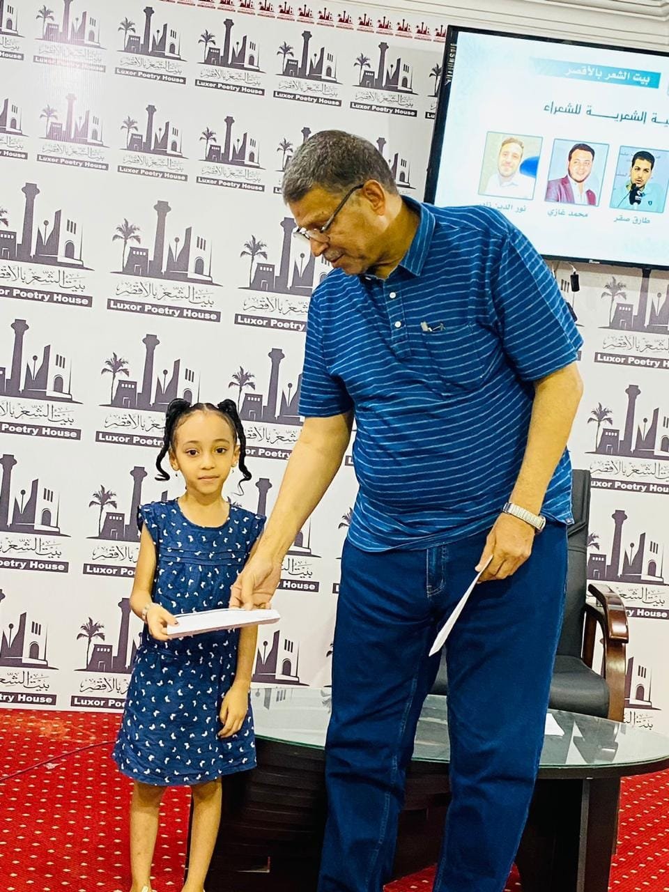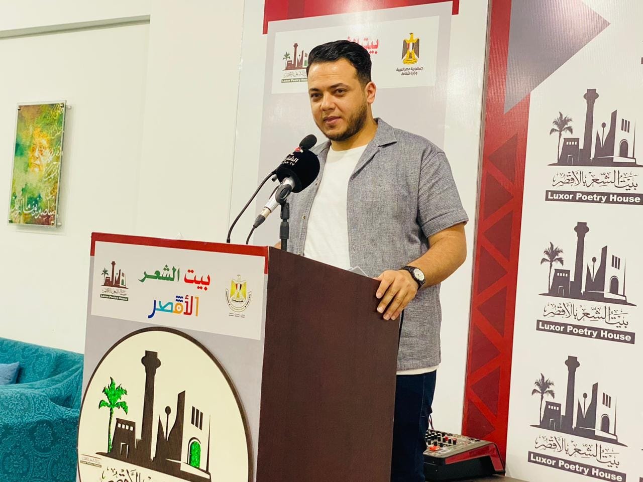 تكريم الشعراء الأربعة الفائزين في مسابقة المواهب الأدبية بالمجلس الأعلى للثقافة في مصر من على منصة بيت الشعر بالأقصر