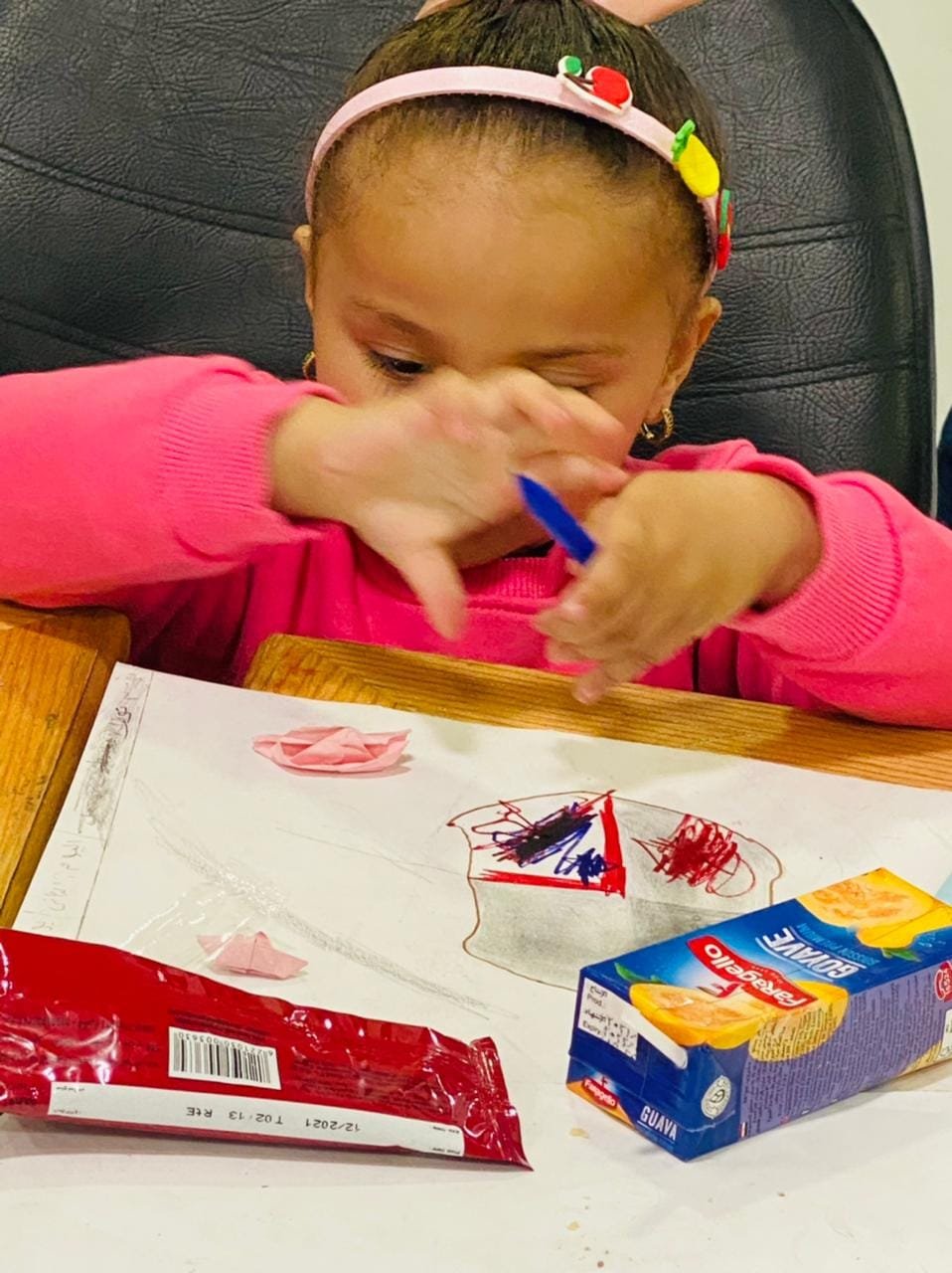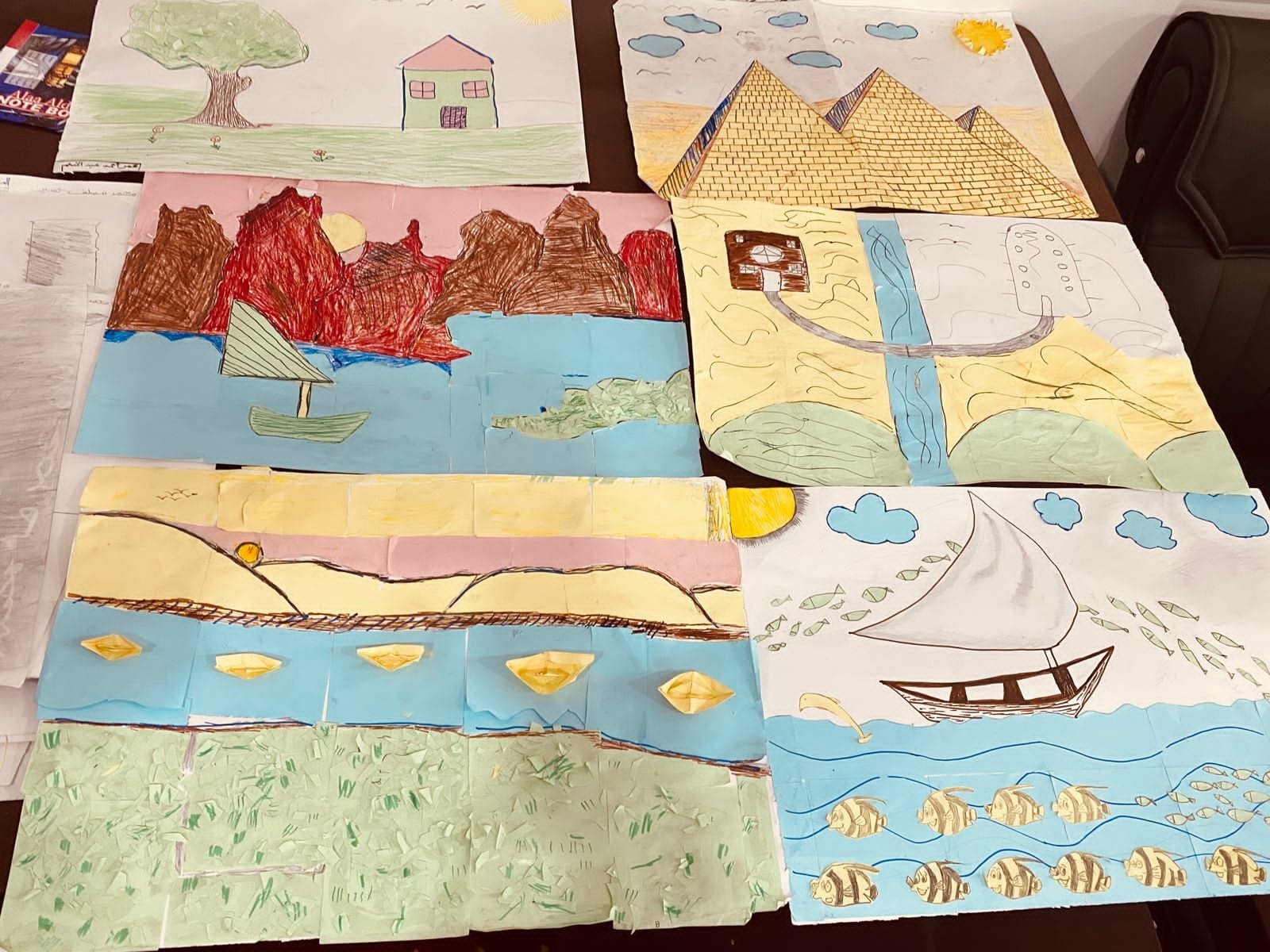 انقسمت ورشة تعليم الرسم إلى قسمين: القسم الأول دراسة العناصر المرئية بواسطة الخط والظل والنور، أما الخط فهو تحديد الشكل وتحديد الأماكن المظلمة والمضيئة في العنصر المرئي، والقسم الثاني هو استلهام موضوع من وحي خيال الطالب يعبر عنه بحرية، والمرحلة الأخيرة تم تقسم المشاركين إلى خمس مجموعات يتعاون أفراد المجموعة في تنفيذ عمل فني بواسطة الأقلام الملونة والورق الملون.