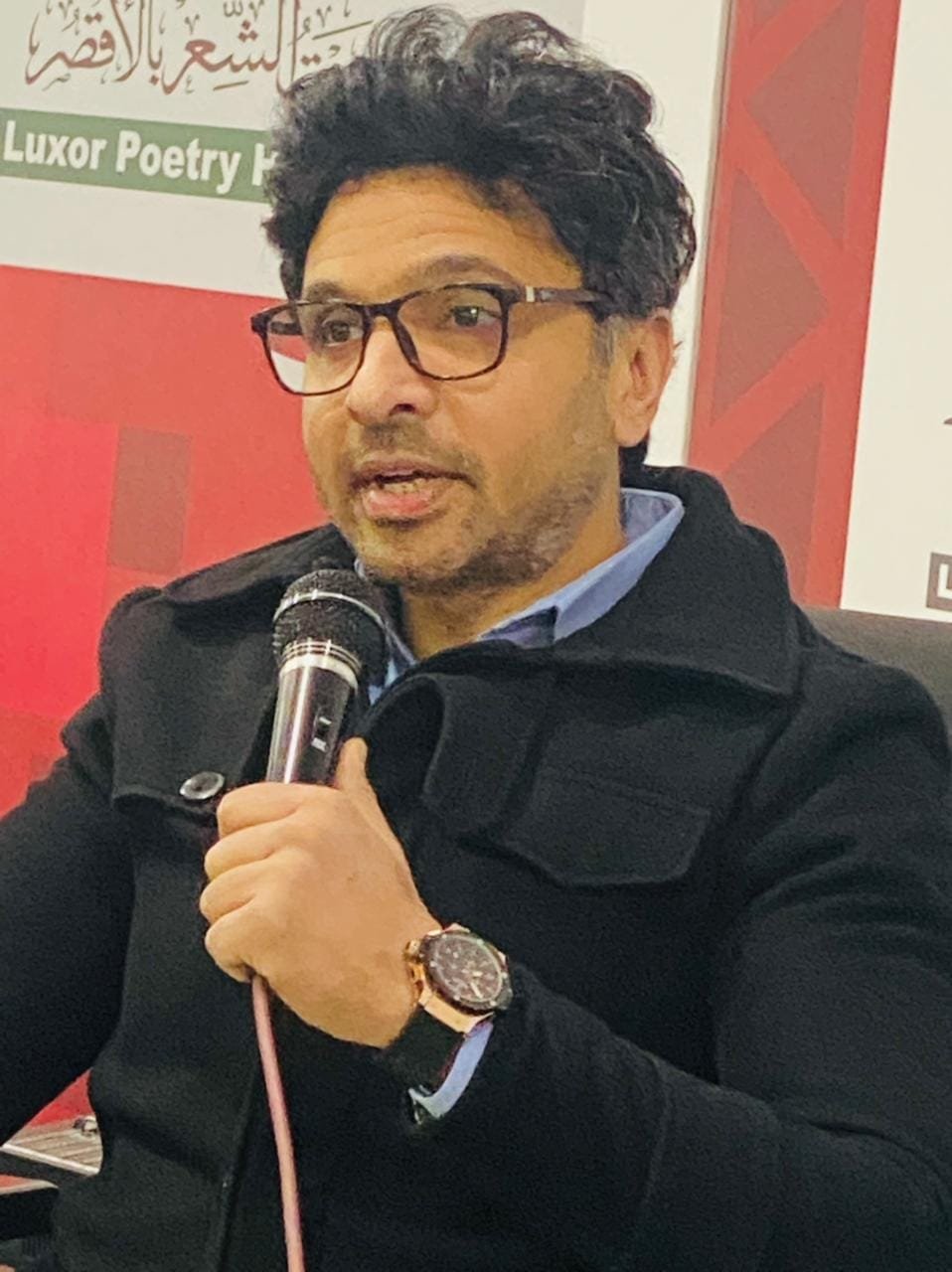 في الجزء الأول من الأمسية استمع الجمهور إلى الدكتور أحمد محمد سمير مدرس التصميم بكلية الفنون الجميلة جامعة الأقصر، له العديد من المشاركات في معارض فنية داخل الكلية وخارجها، قام بتنفيذ معرض فني في كلية الفنون بعنوان ” دعوة للتفاؤل” مستوحى من شعر إيليا أبو ماضي وقصيدته الشهيرة “أيهذا الشاكي” كما أشرف على معرضين فنيين في بيت الشعر بالأقصر بعنوان “خيوط الظل” وله العديد من الأبحاث المنشورة منها: تكنولوجيا التصميم الرقمي في الارتقاء بغلاف الكتاب، تصميم الشعار في بعض الجامعات المصرية بين الهوية والإبداع، أهمية توظيف عناصر التصميم البصرية داخل المطويات السياحية وغيرها من الأبحاث.