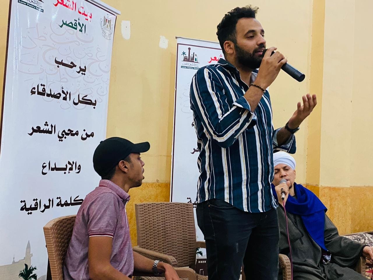 ثم تلاه الشاعر حمادة الفارسي شاعر من محافظة الأقصر مركز إسنا يكتب فن الواو والمربع بكل أنواعه ويكتب فن النميم وله حضور لافت ومشاركات عديدة في عدة لقاءات شعرية وأمسيات.